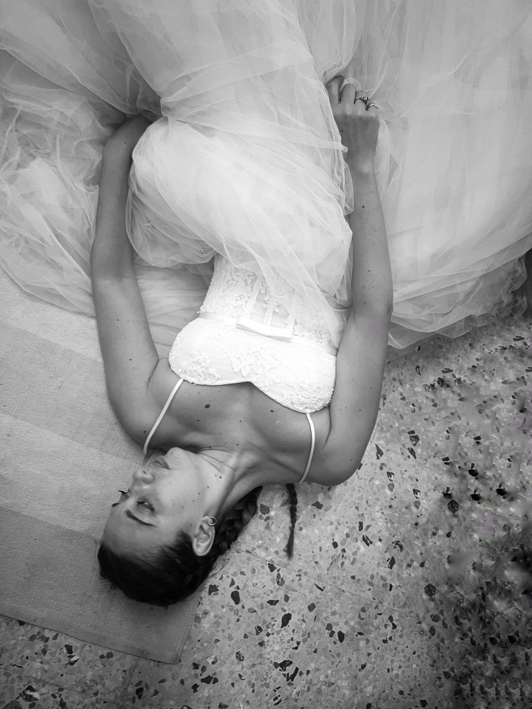 il bianco dell’abito da sposa come tela vergine da cui tutto può prendere forma.
