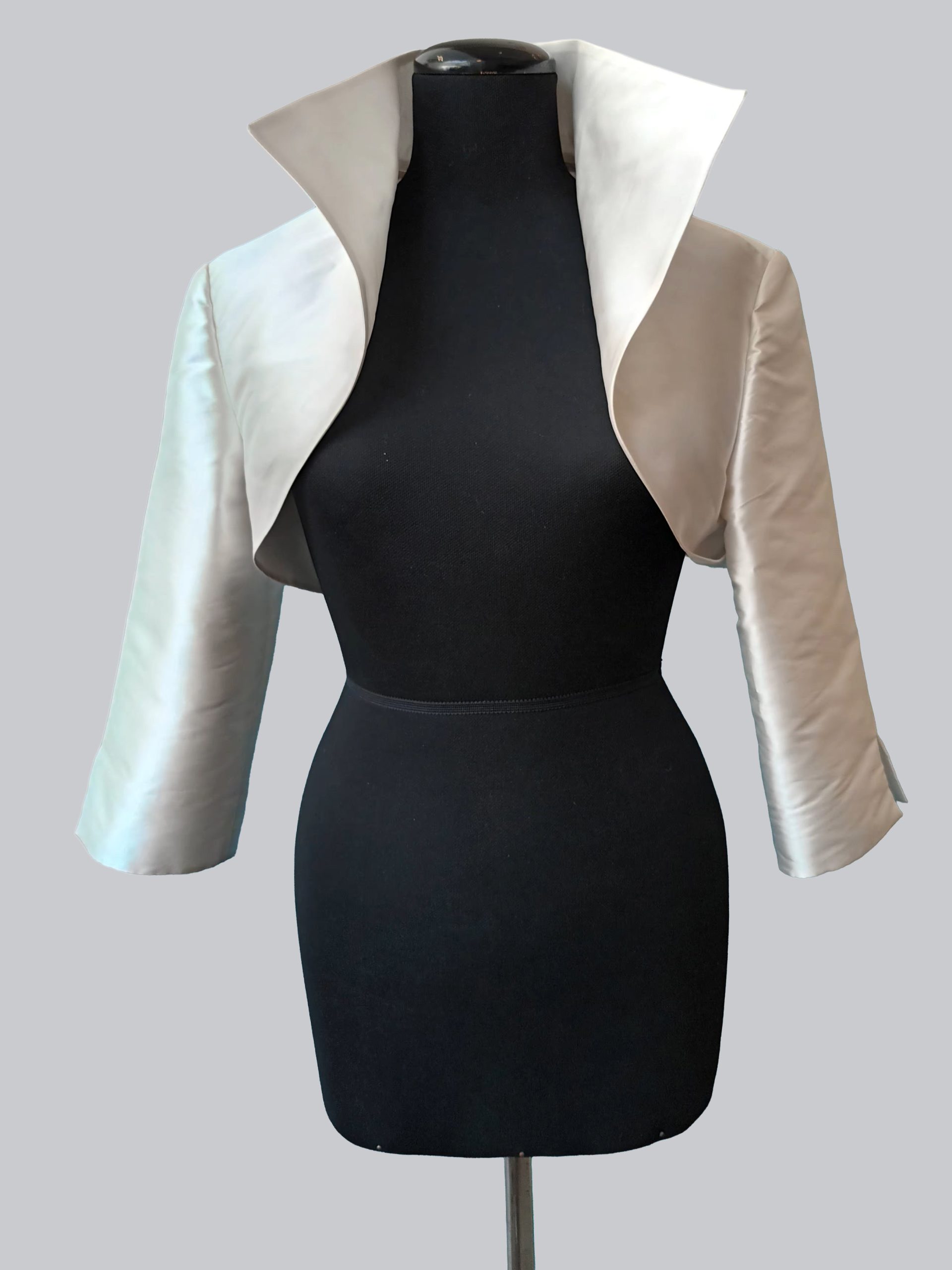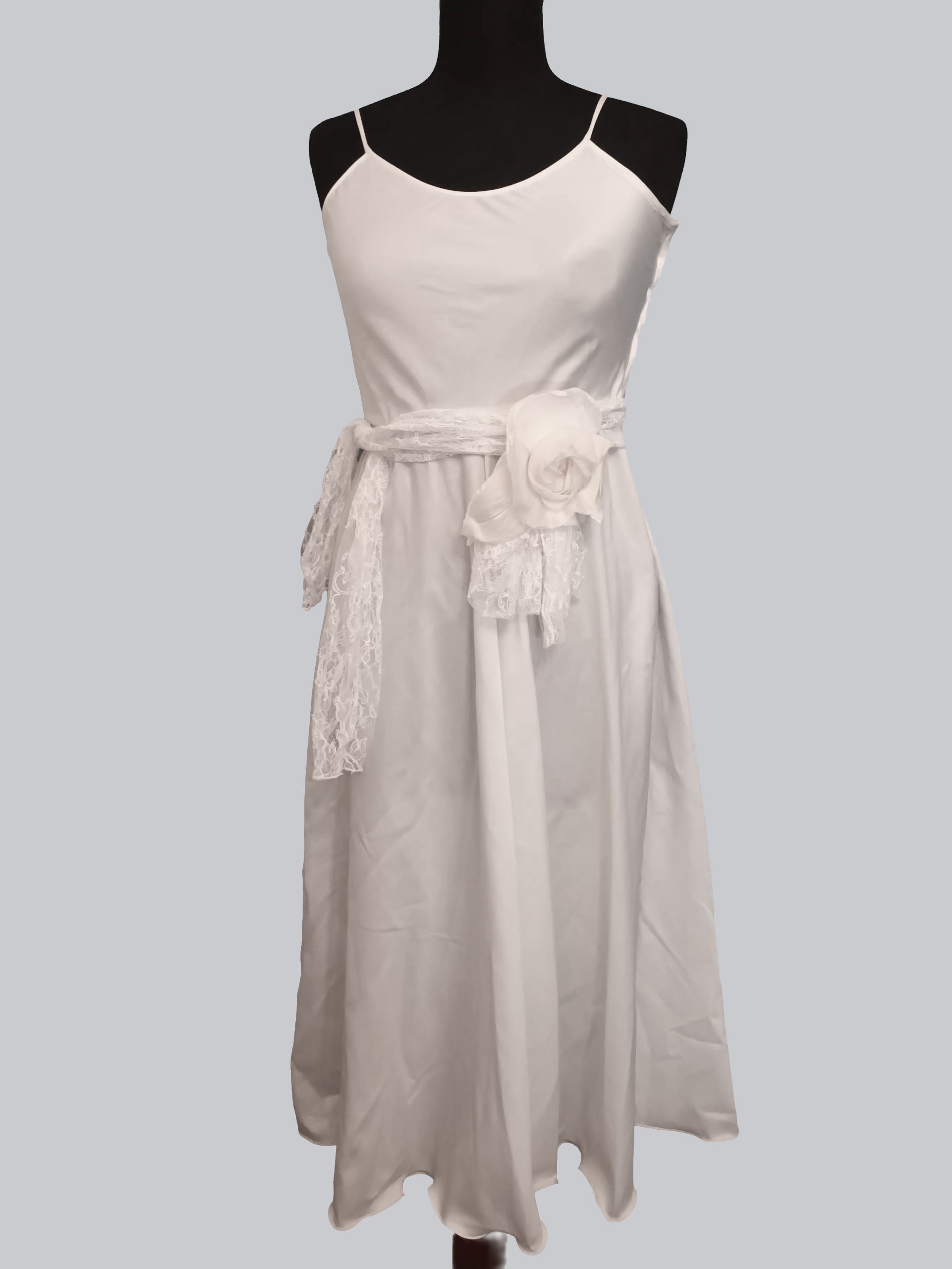 Abito sottoveste con cintura in pizzo con fiore e bolero in mikado