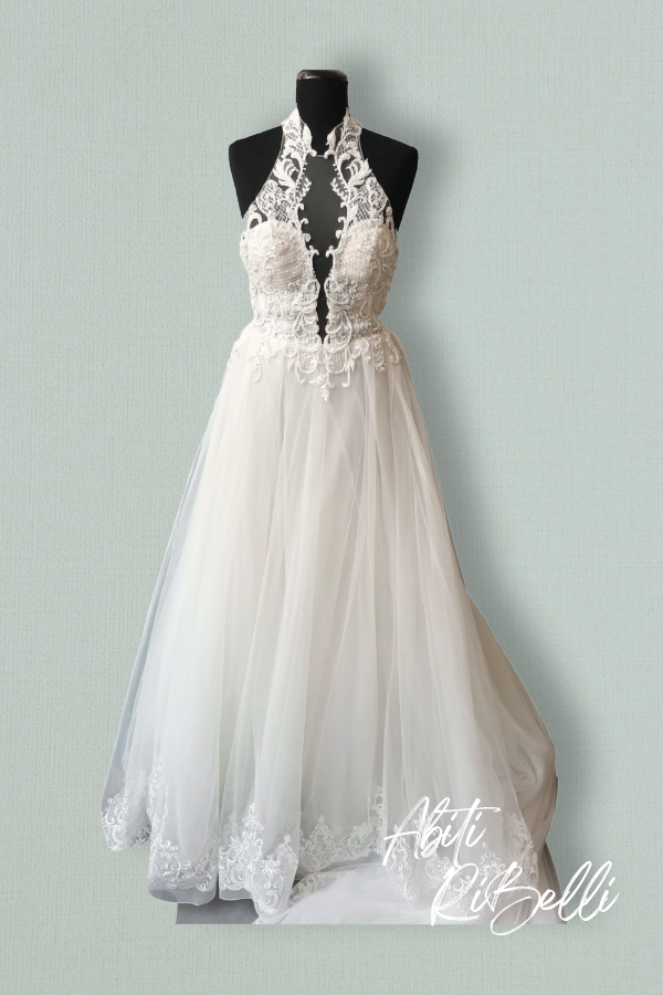 abito scollatura americana tulle e pizzo (piccola macchia nel corpetto)