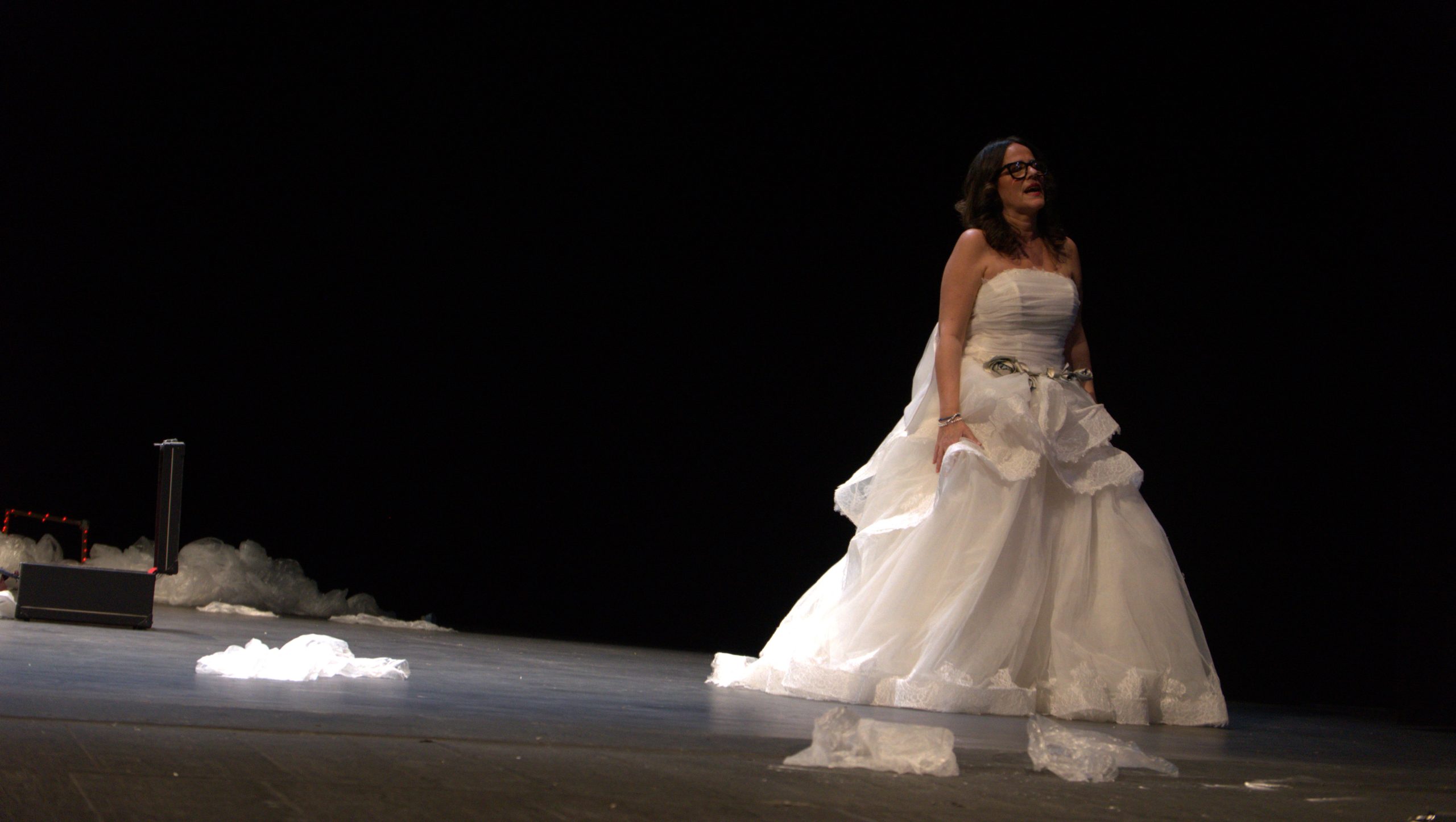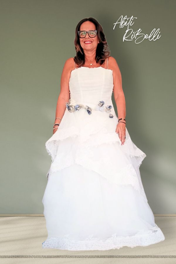 abito in tulle con balze in pizzo chantilly