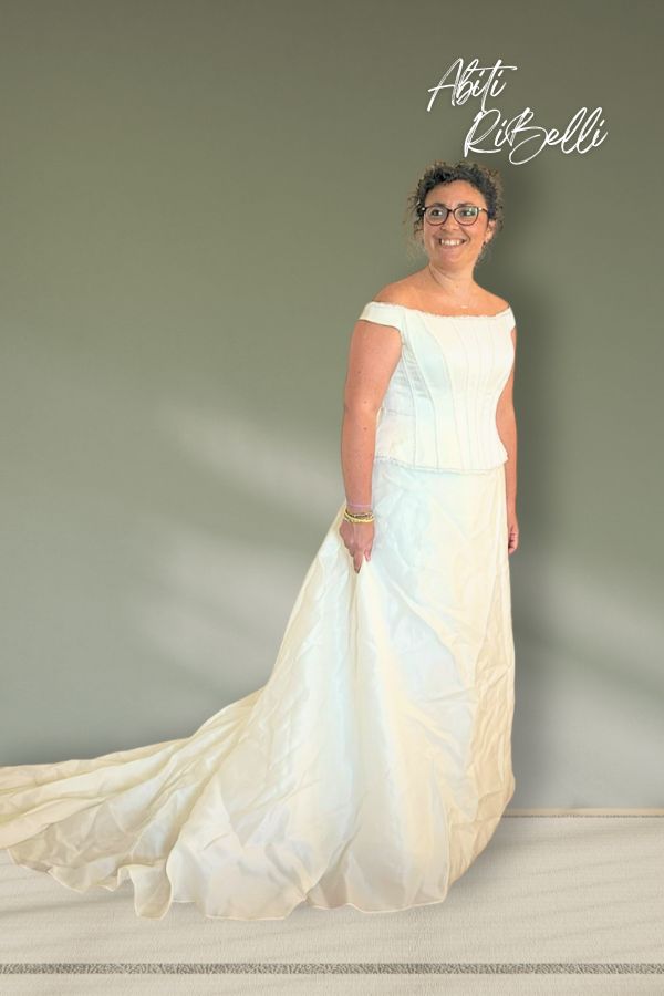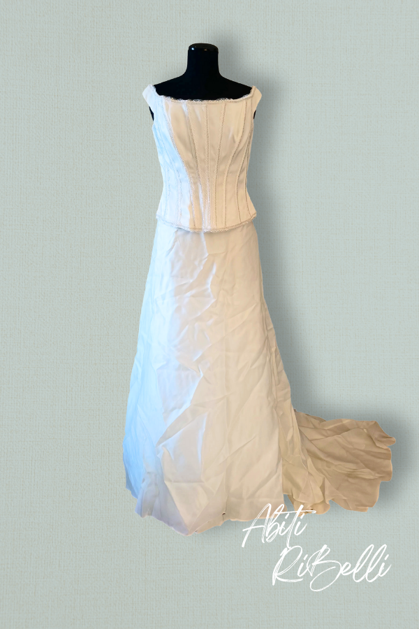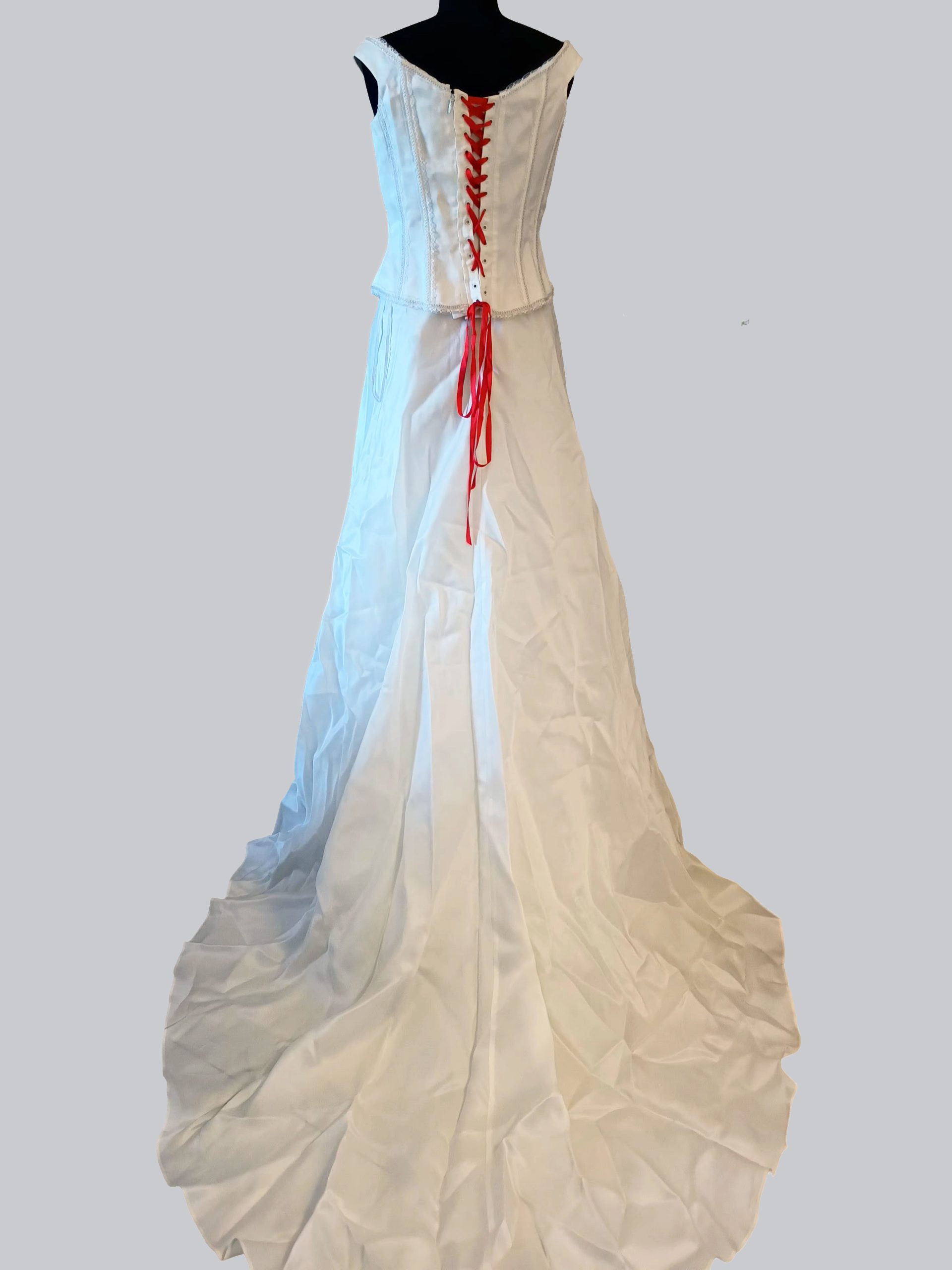 Corpetto bustier steccato con stringatura rossa e gonna in taffetà