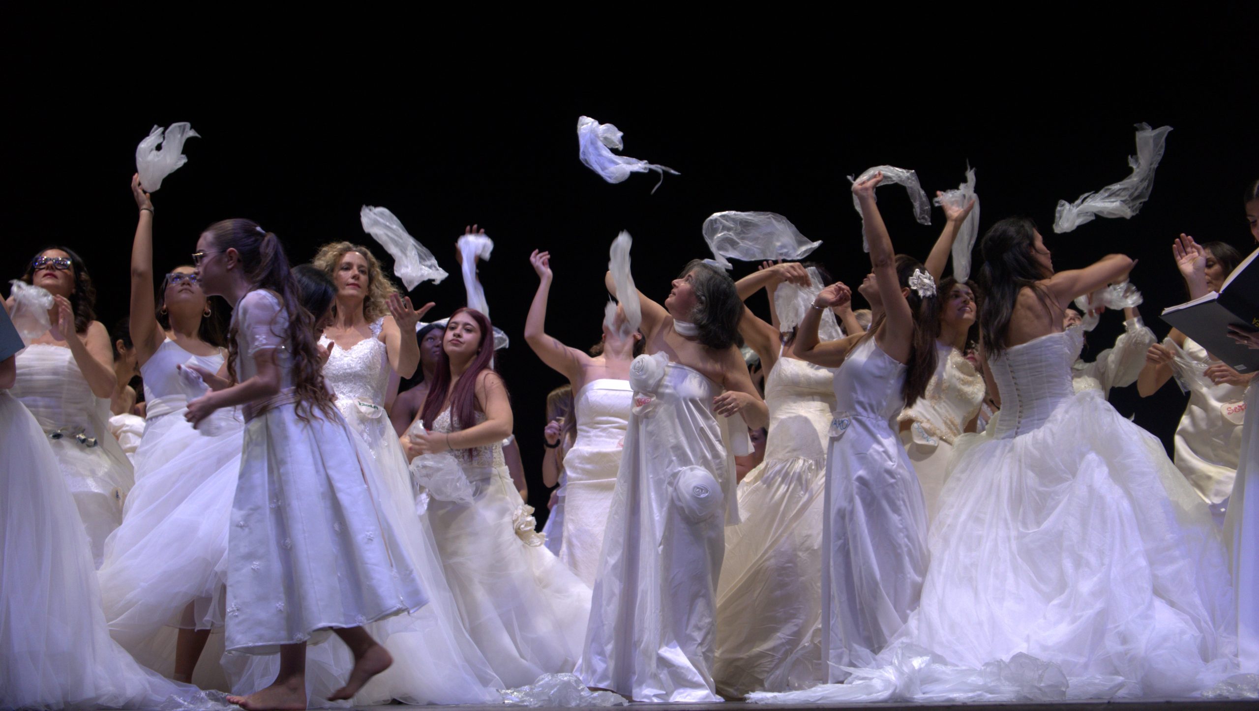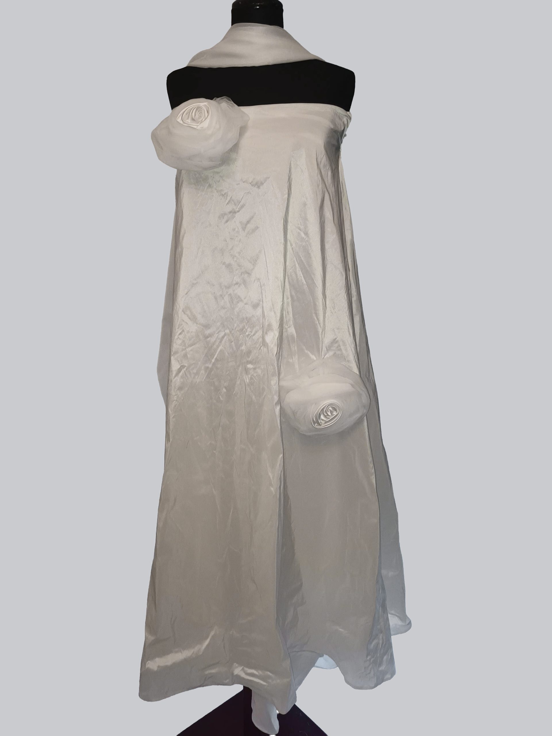 Gonna in raso con fiori in 3D e stola in organza
