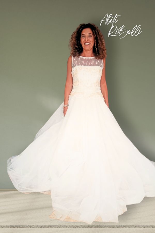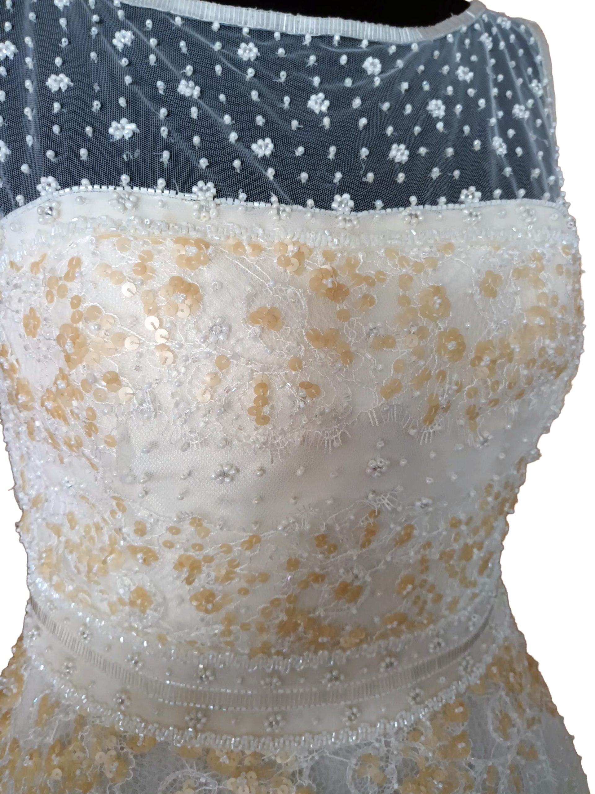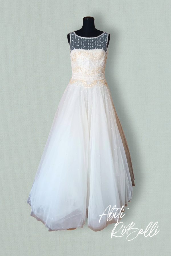 Abito in pizzo ricamato prezioso bicolore e tulle