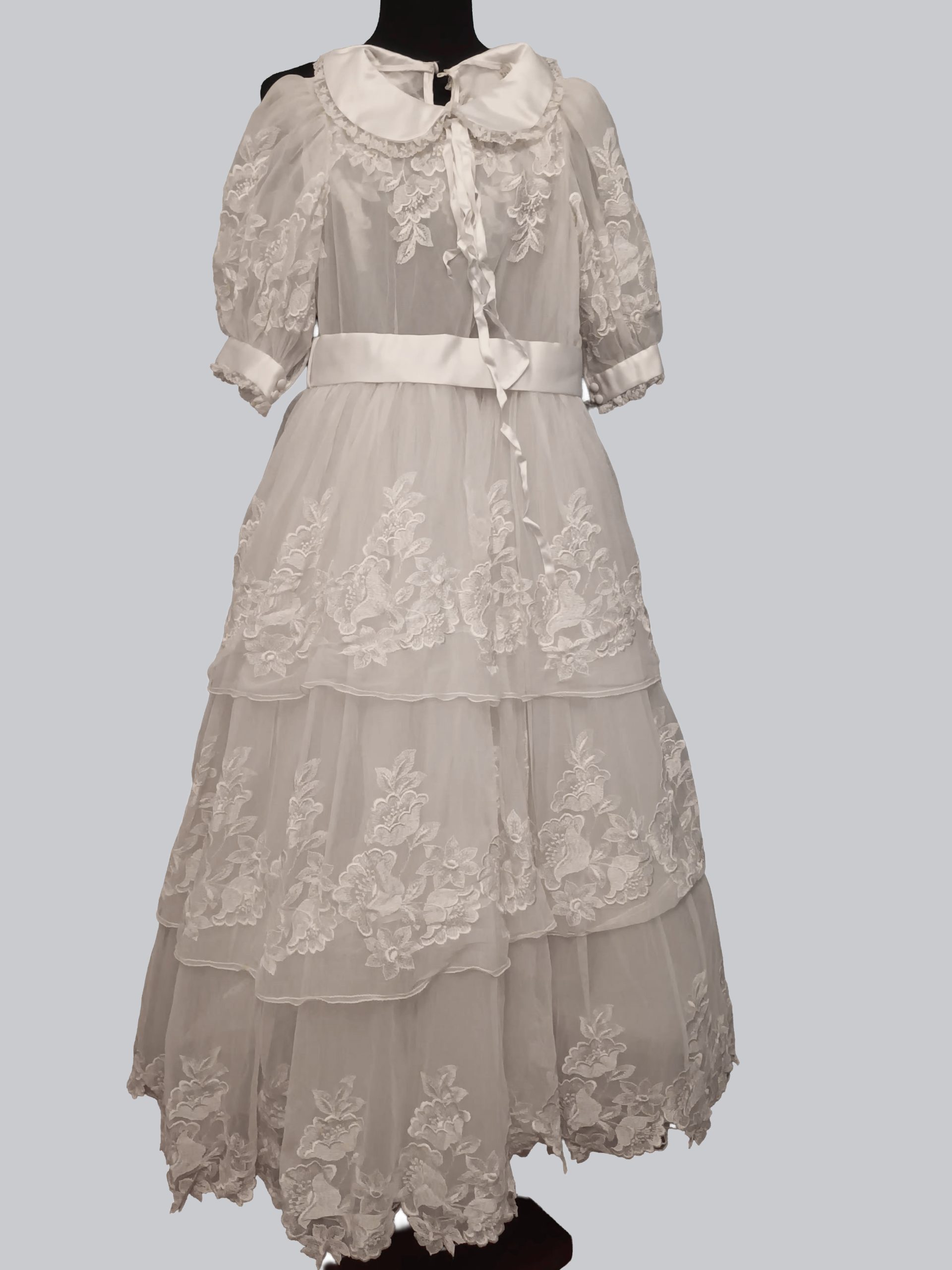 abito damigella vintage in chiffon con applicazioni di fiori ricamati