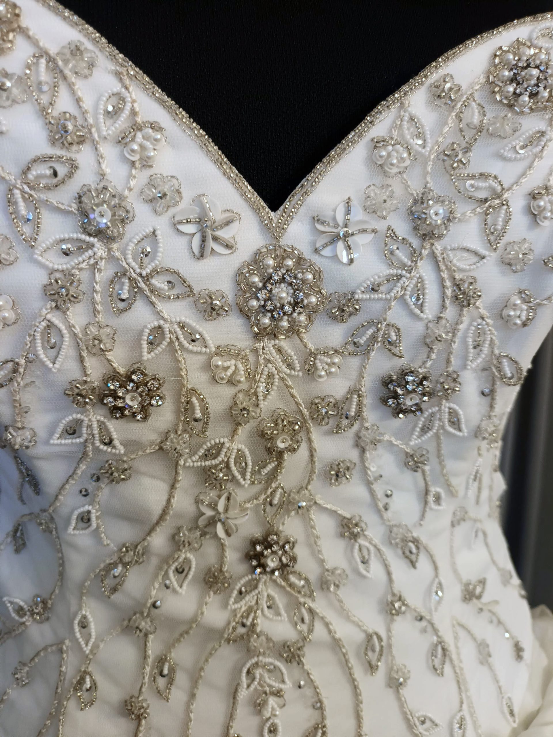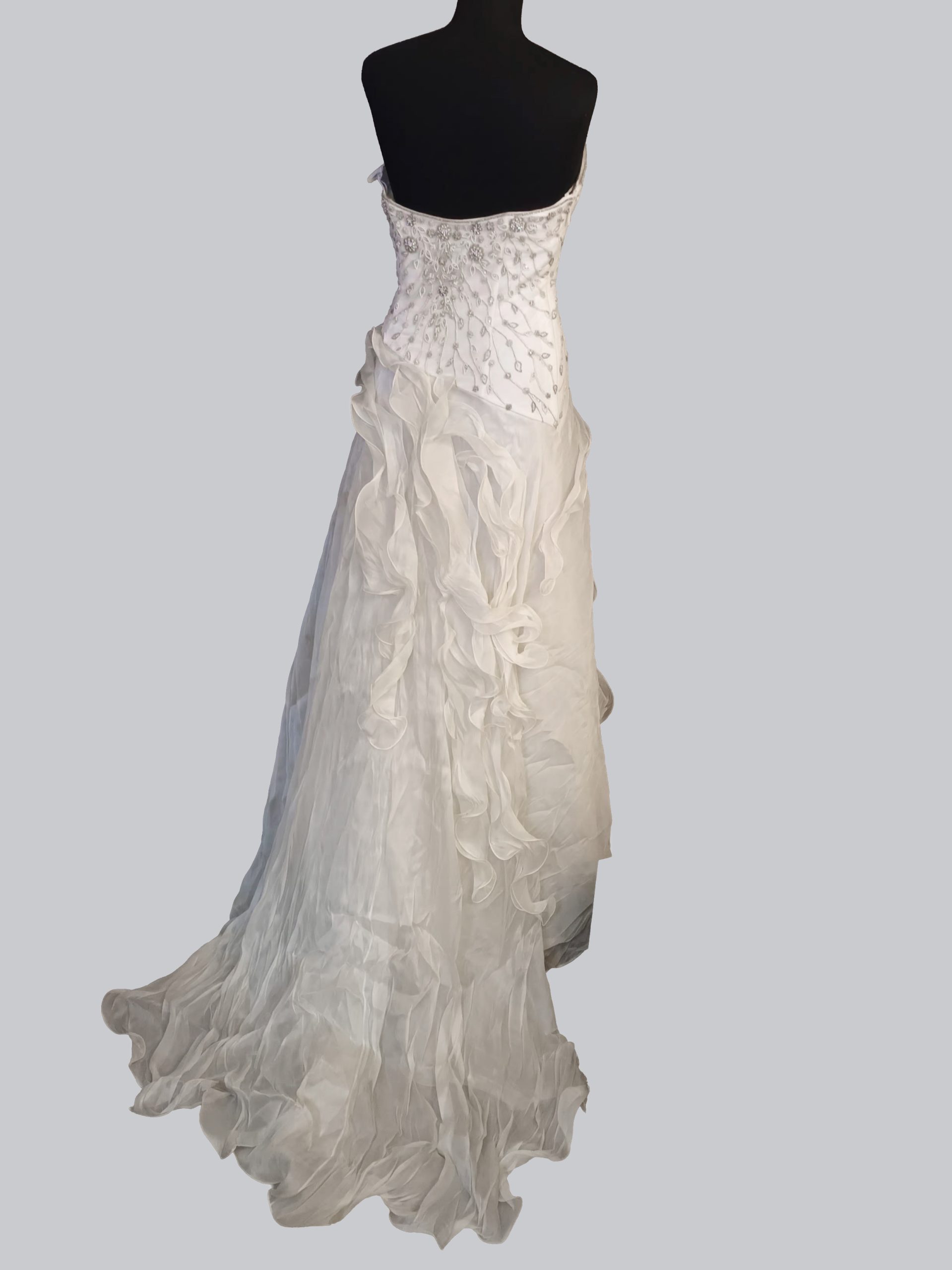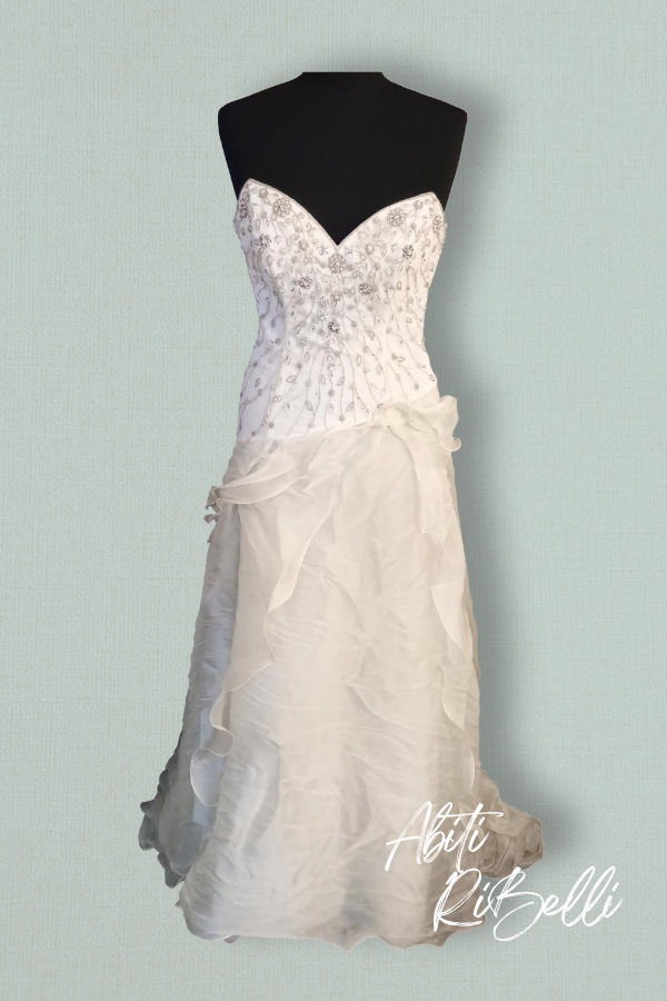 abito scollatura a cuore con corpino ricamato e gonna in organza color ecrù