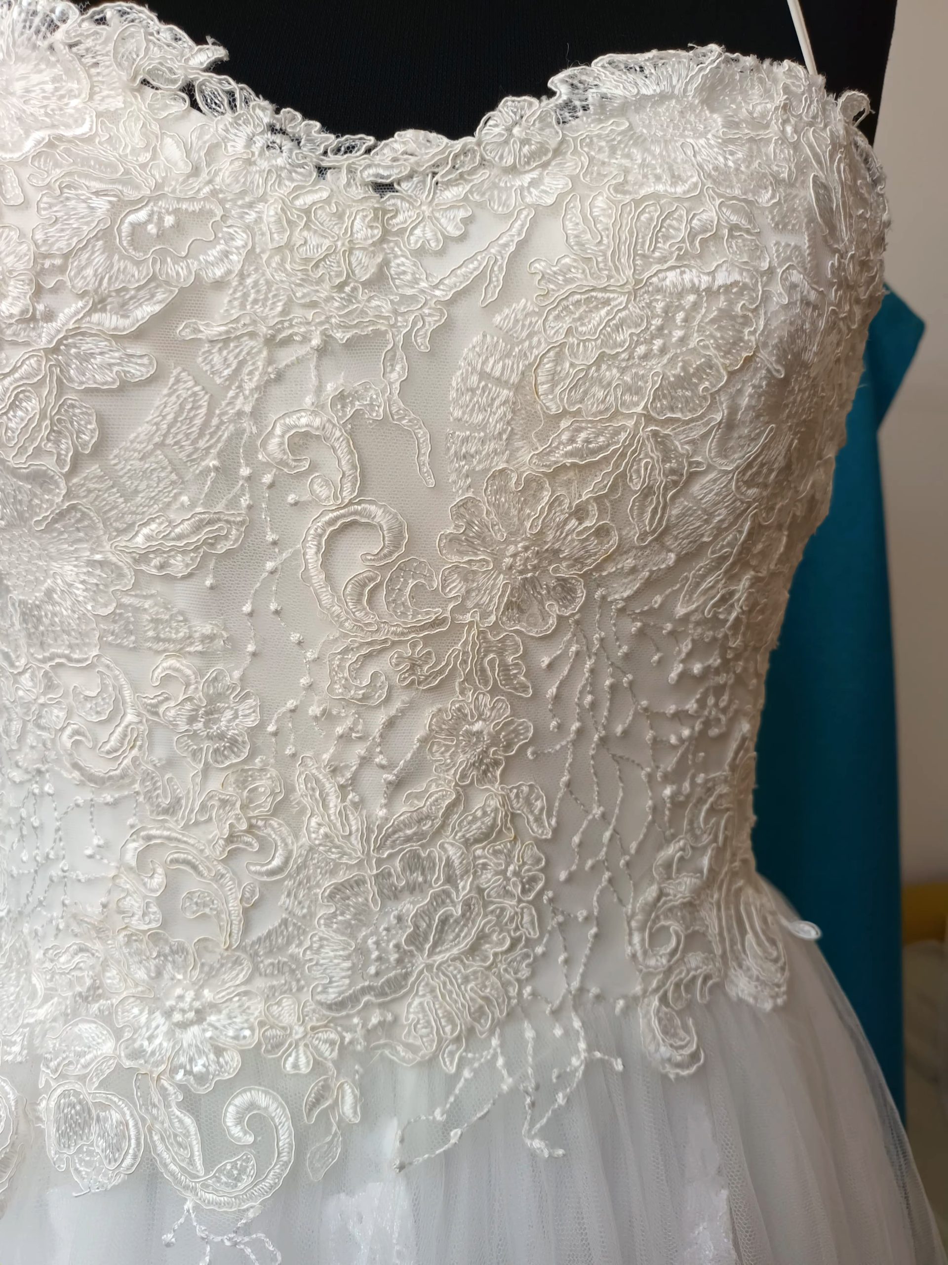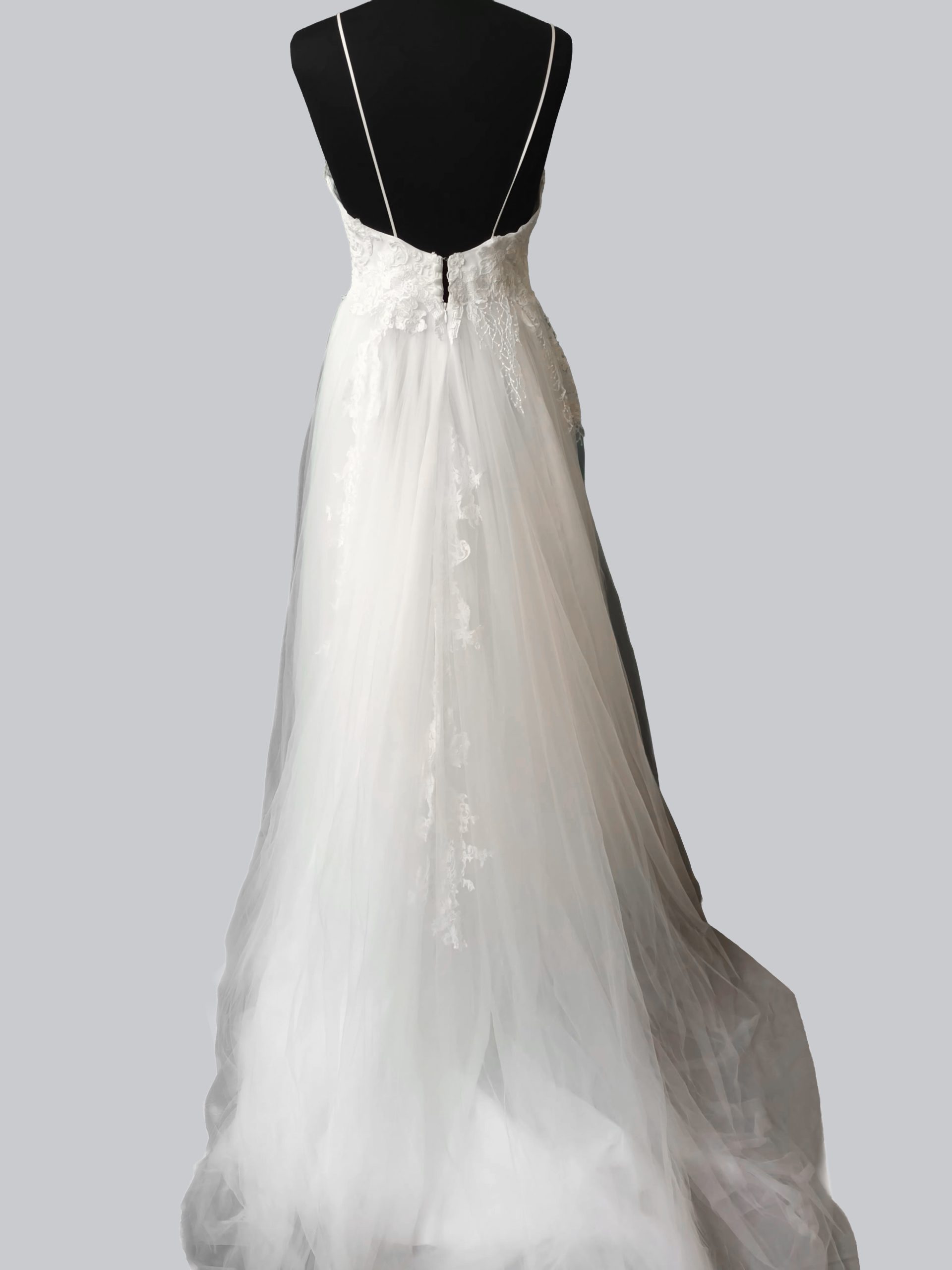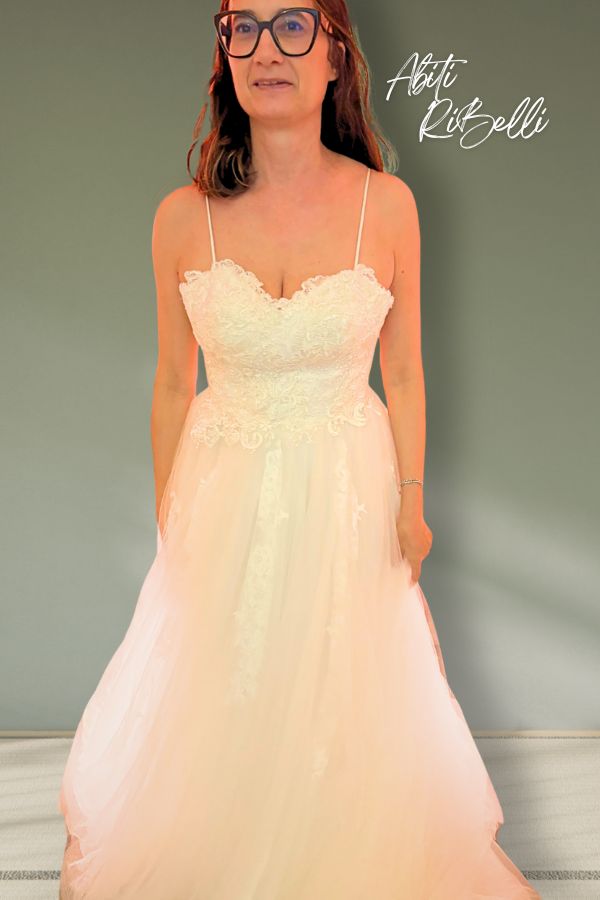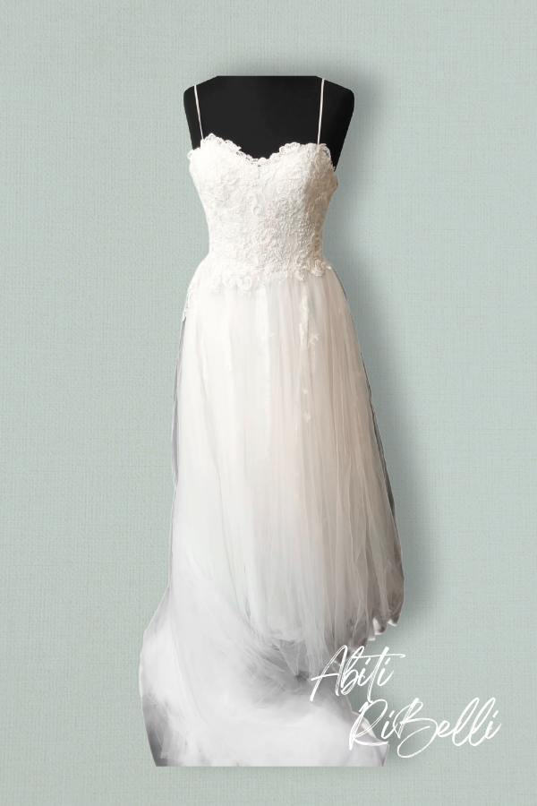Abito con bretelline in tulle e pizzo macramè