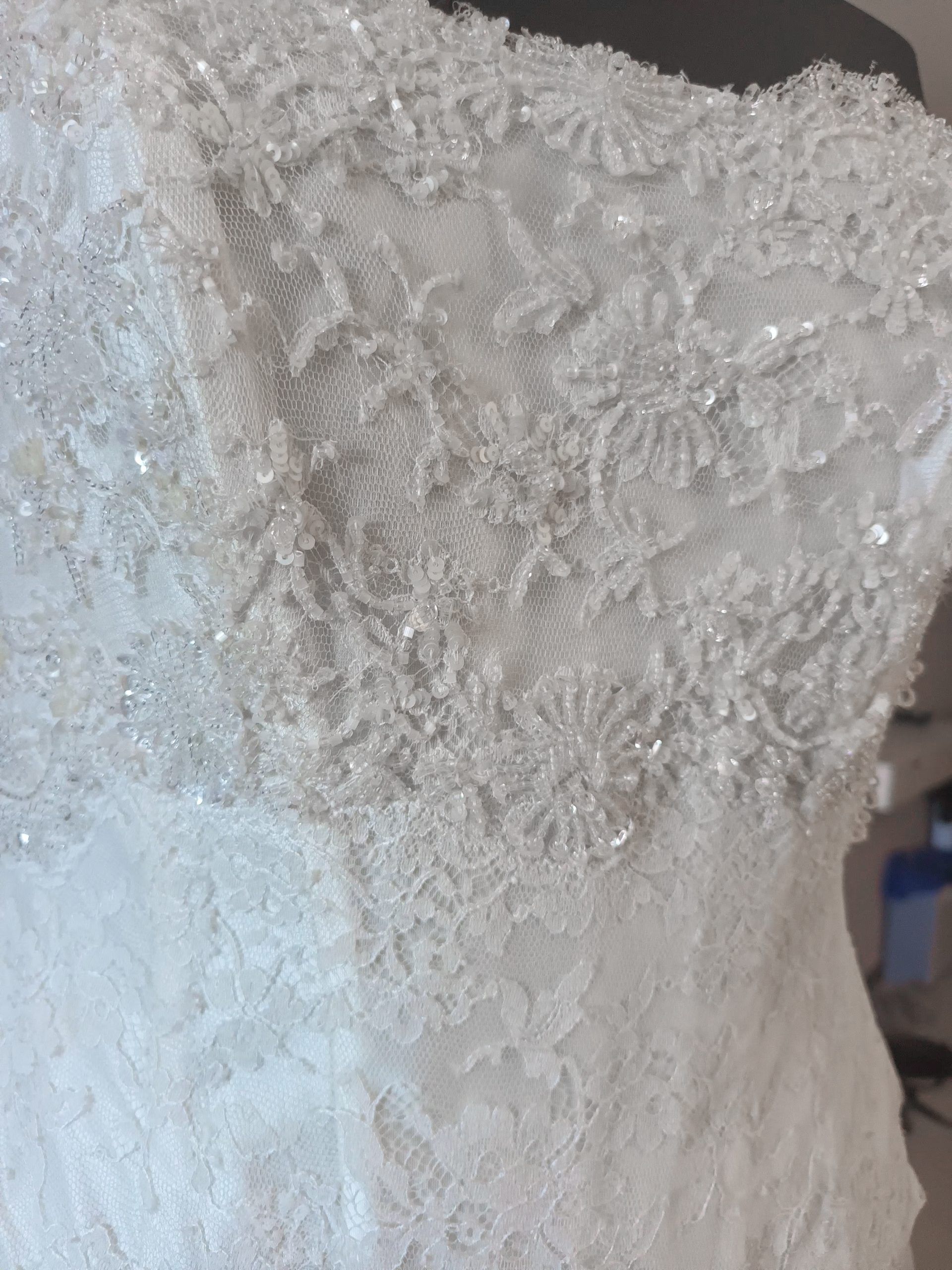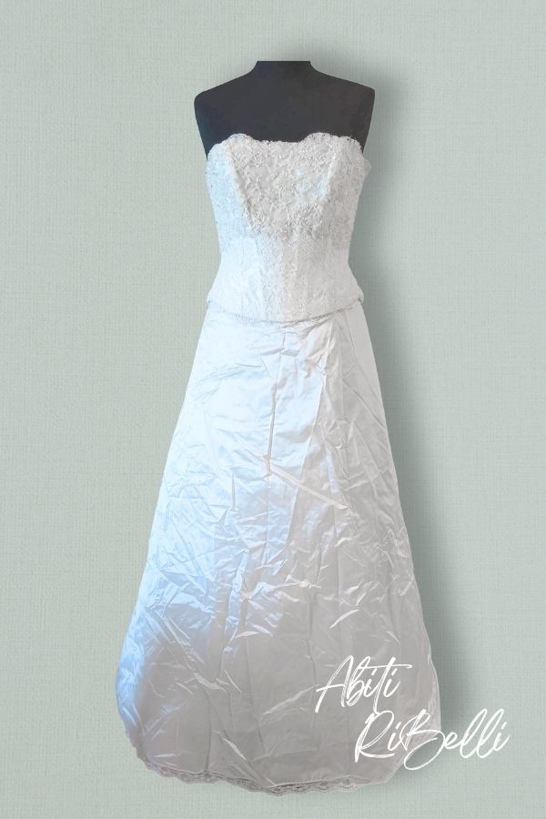Abito due pezzi bustier in pizzo chantilly ricamato e gonna